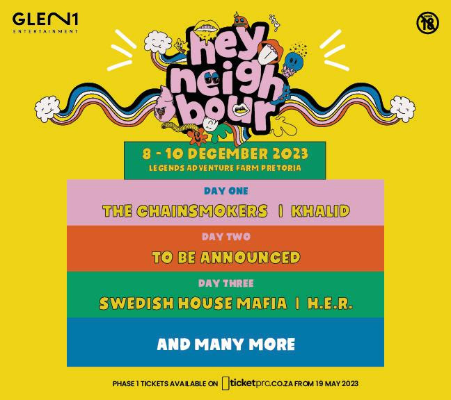 WELCOME TO 'HEY NEIGHBOUR' SOUTH AFRICA'S FRESHEST LIFESTYLE FESTIVAL EXPERIENCE! Howdy! Howzit! Hola! Hafa! Aweh! Hello there, Neighbour! Â Â Â Â Johannesburg, South Africa -Â Buckle up, neighbours! The trailblazing team at Glen21 Entertainment, South Africa's leading event maestros, are beyond excited to bring you the first-of-its-kind three-day music and lifestyle festival, HEY NEIGHBOUR. Created, curated and sprung from South African soil, this event is