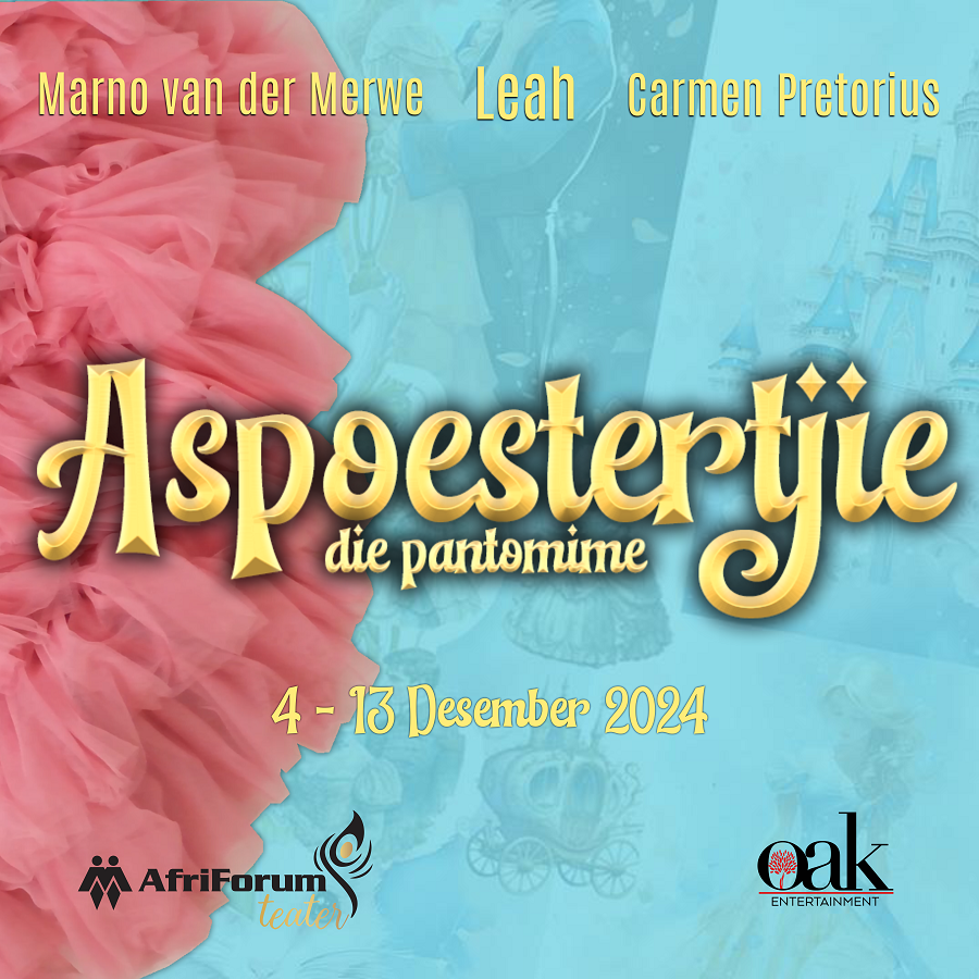 A magical fairy tale full of laughter, love and adventure! (“’n Magiese sprokie vol lag, liefde en avontuur!”) Pretoria, [October 2024] - OAK Entertainment is thrilled to announce ‘Aspoestertjie: Die Pantomime’ which opens at the Afriforum Theatre from 4 - 13 December 2024 and promises to captivate the entire family! ‘Aspoestertjie: Die Pantomime’ is a comedic retelling of the classic Cinderella story with