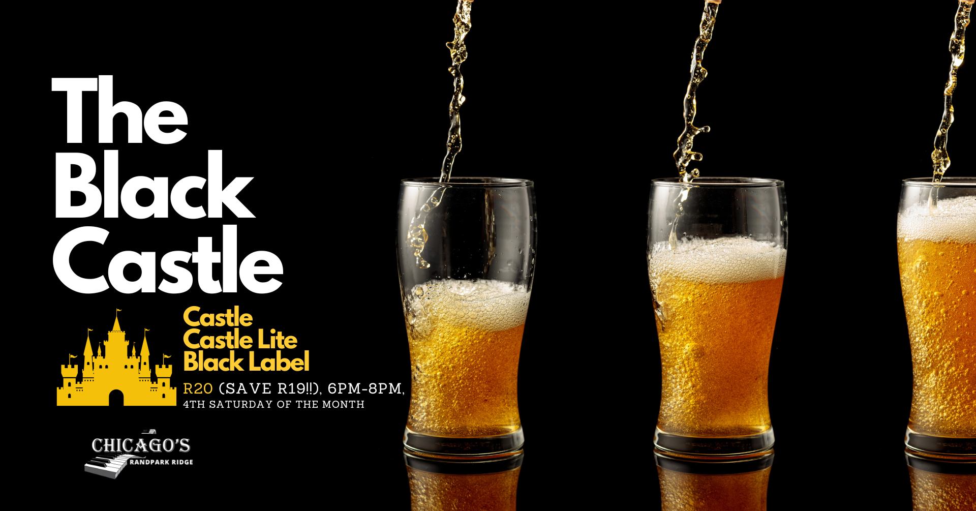 THE BLACK CASTLE BEER BASH – EVERY 4TH SATURDAY Beer lovers, this one’s for you! 🍺 HAPPY HOUR 4PM-6PM - 40% off all drinks followed by