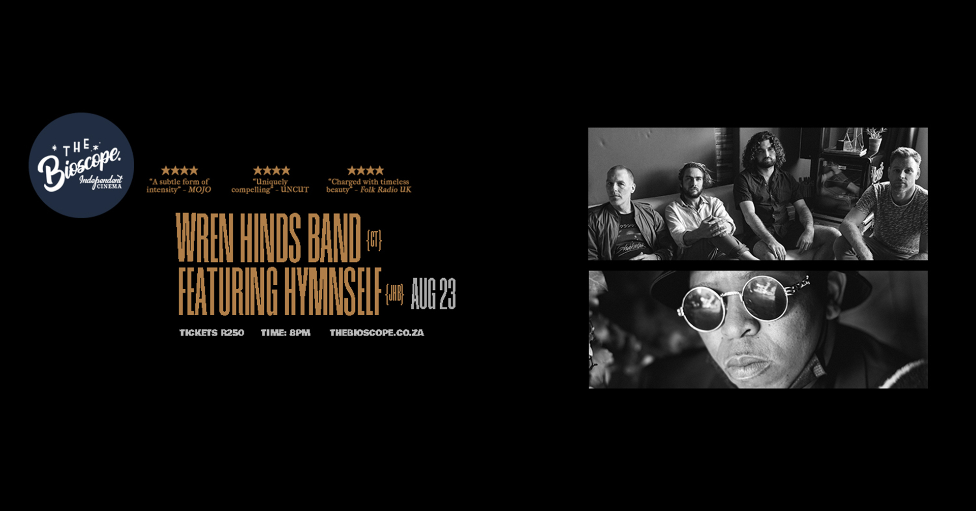 August 23 | The Bioscope Independent Cinema | Only 47 Seats Available The Bioscope is proud to present an intimate winter’s evening with two of South Africa’s most visionary artists: Wren Hinds and Featuring Hymnself, performing in a rare shared billing inside Johannesburg’s beloved independent cinema. With just 47 tickets available, this one-night-only performance offers a singular listening experience in one