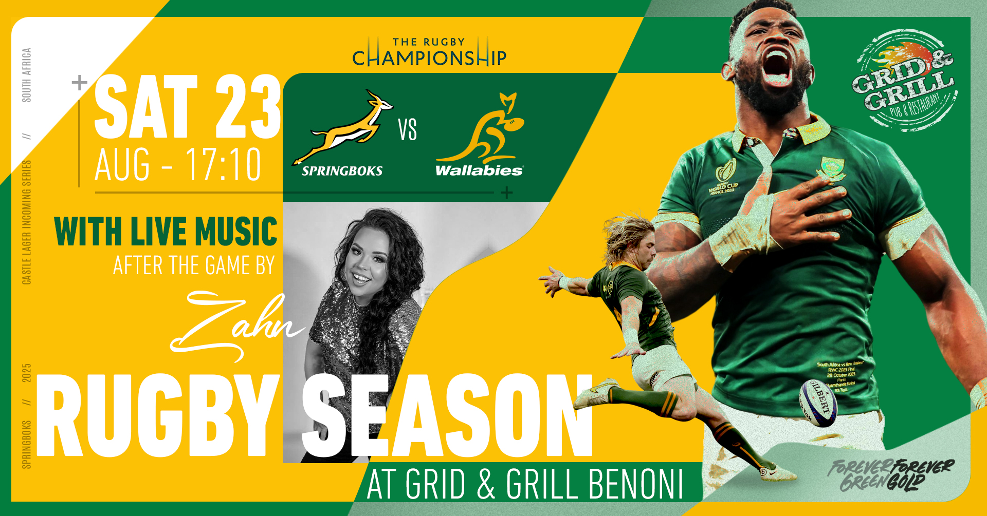 The 2025 International RUGBY SEASON CONTINUES! Come join us for all the games LIVE on our screens & BIG SCREEN - plus after the games we'll have the best LIVE MUSIC to keep you partying and celebrating 🥳🏆 So join us on SAT 23 AUG as the Boks take on the Wallabies at 5pm. Come join us and support! 🏉🇿🇦 LIVE MUSIC,