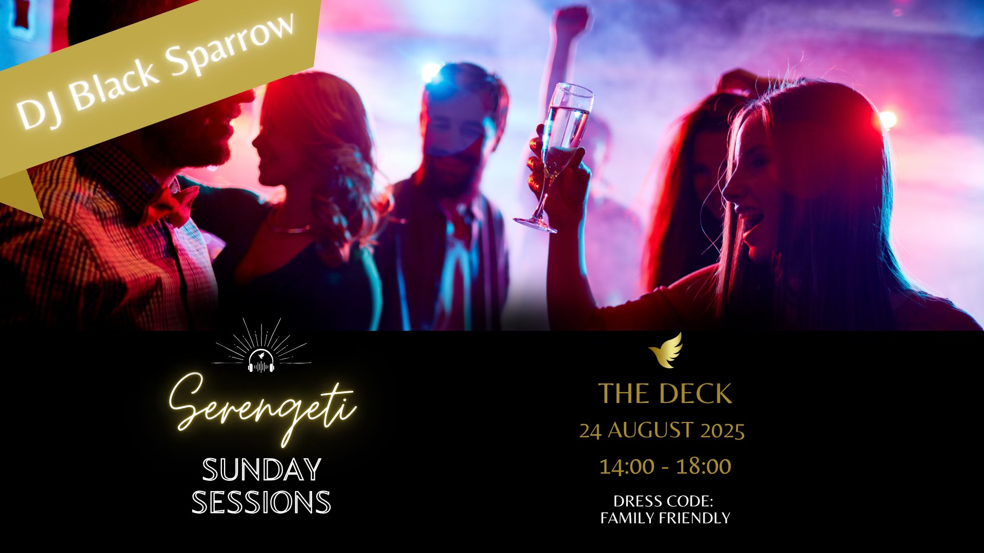 🎶 Serengeti Sunday Sessions 🗓 24 August 2025 | ⏰ 14:00–18:00 📍The Deck | 🎧 Featuring DJ Black Sparrow 👗 Dress Code: Family Friendly Relax, vibe, and enjoy great music, food, and views with the whole family. #SerengetiEstates #ForgedByNature #SundaySessions #FamilyVibes