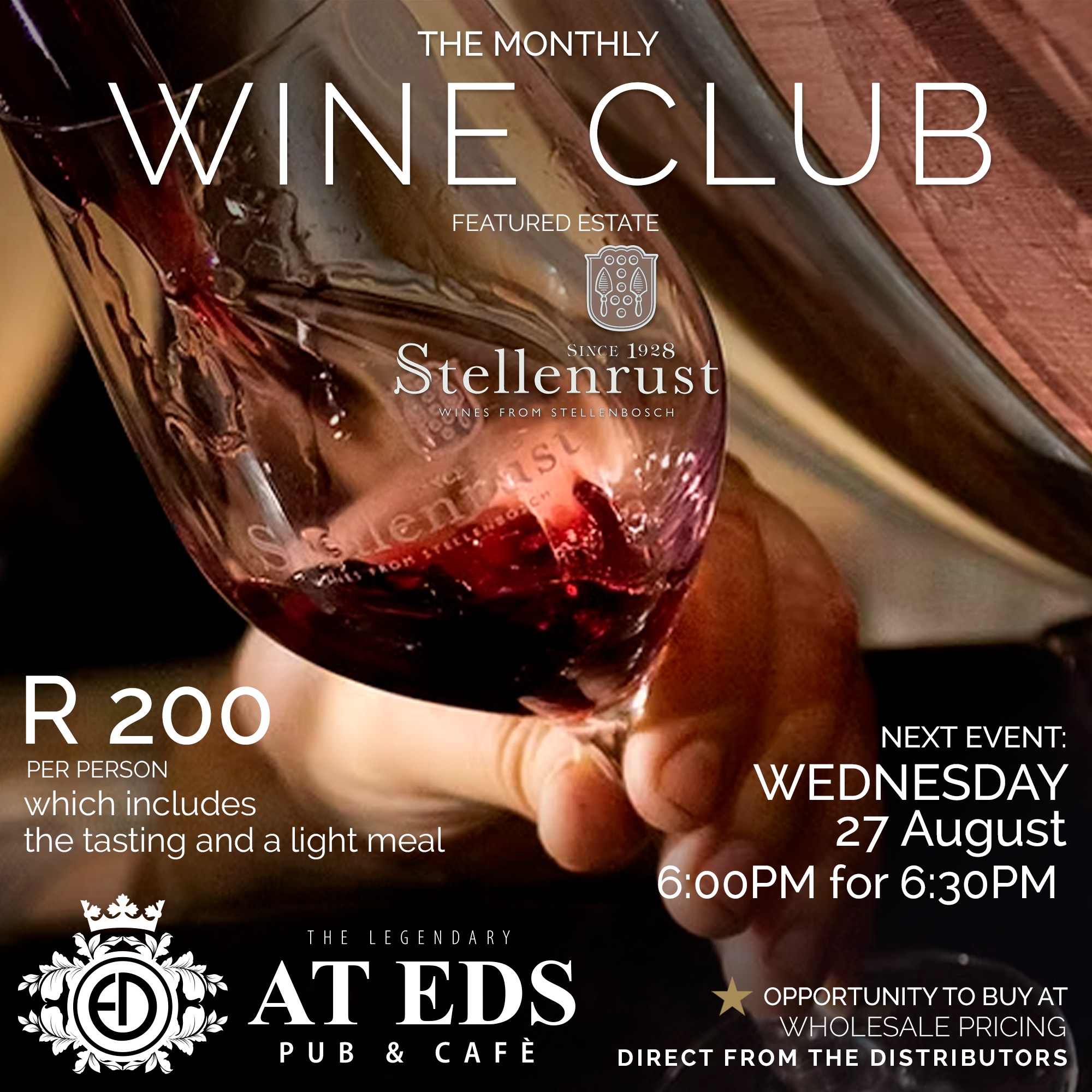 🍷 Join Us for an Elegant Evening with Stellenrust Wines 🍷 We're thrilled to invite you to our August Wine Club as we showcase the storied Stellenrust Wine Estate, nestled in the heart of Stellenbosch. Date: Wednesday, 27 August Time: 6:00 PM arrival for a 6:30 PM start Price: R200 per person (includes a light meal) Venue: Old Edwardian Sports Club, 40 4th street, Houghton