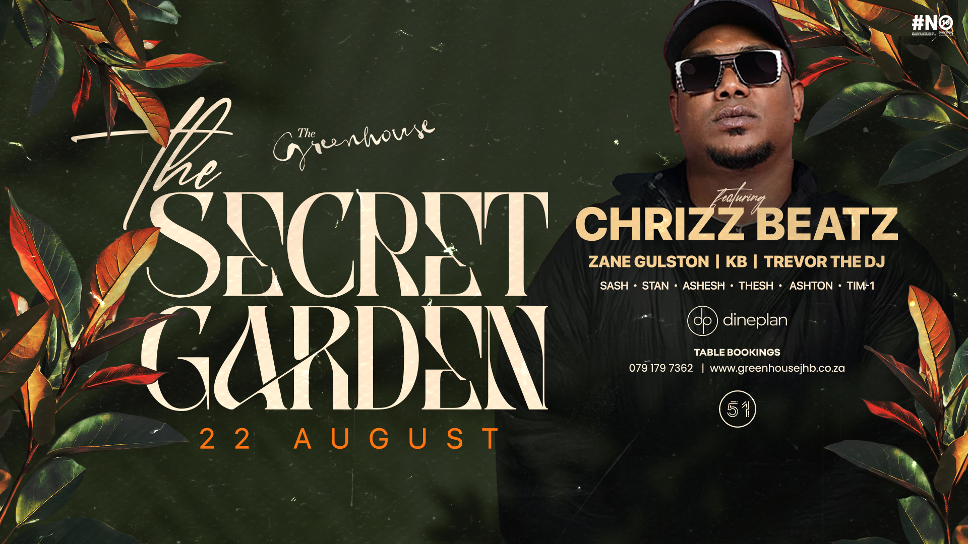 🌿 THE SECRET GARDEN — FRIDAY | 22 AUGUST 2025 🌿 When Chrizz Beatz steps into The Garden, the night changes gear. Next Friday, we’re going in deep, loud, and late — with a lineup that’s pure fire from start to sunrise. 🎧 Chrizz Beatz 🔥 Zane Gulston • KB • Trevor The DJ Our Residents: Sash • Stan • Ashesh • Thesh • Ashton